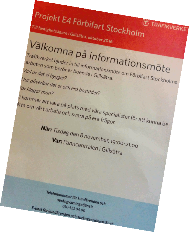 Det här är ett unikt tillfälle att få direkt information från Trafikverket om arbetet med förbifarten och hur det påverkar oss samt en möjlighet för dig att ställa de frågor du har. Notera med andra ord mötet så du inte missar detta tillfälle.